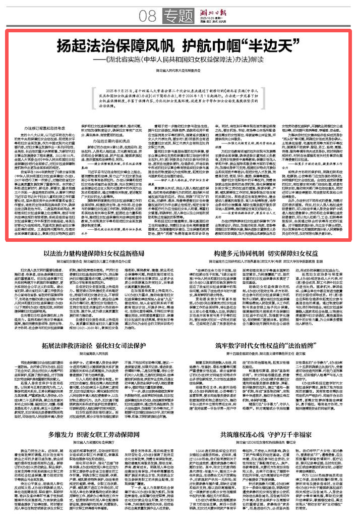 湖北日报|扬起法治保障风帆 护航巾帼“半边天”——《湖北省实施〈中华人民共和国妇女权益保障法〉办法》解读