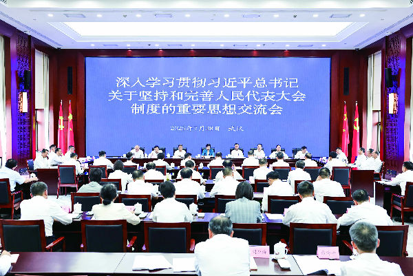 “要深刻领会和把握根本政治原则,把旗帜鲜明讲政治摆在第一位,在坚持党的全面领导上提升新境界。”7月28日,深入学习贯彻习近平总书记关于坚持和完善人民代表大会制度的重要思想交流会举行,常委会党组主要负责同志出席并讲话。