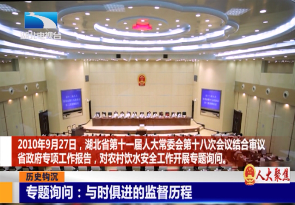 随后,在全国人大常委会的示范引领下,2010年9月27日,湖北省第十一届人大常委会第十八次会议结合审议省政府专项工作报告,对农村饮水安全工作开展专题询问。省水利厅、发改委、财政厅、住建厅、卫生厅、环保厅等六部门负责人到会听取意见并回答询问,这也是湖北省人大设立常委会30年来第一次举行专题询问。