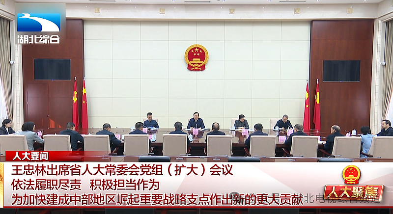 10月27日上午,省委书记、省人大常委会主任王忠林出席省人大常委会党组(扩大)会议并讲话。他强调,省人大常委会要深入学习贯彻党的二十届四中全会精神和习近平总书记考察湖北重要讲话精神,进一步强化支点意识、抬升发展标杆,依法履职尽责,积极担当作为,为加快建成中部地区崛起重要战略支点作出新的更大贡献。