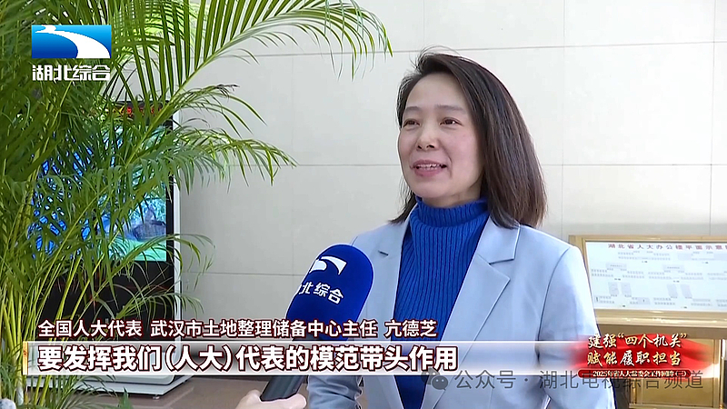 全国人大代表 武汉市土地整理储备中心主任 亢德芝:要发挥我们人大代表模范带头作用,我们要做政治上的明白人,要做推动支点建设的带头人,我将聚焦自然资源的高效配置和合理利用,找准“十五五”发展规划的关键点和突破口,为我们湖北的支点建设和高质量发展做好要素的保障工作。