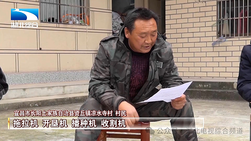 宜昌市长阳土家族自治县资丘镇凉水寺村 村民:针对农村现在全部是老人了,没什么年轻人了,这(项目落地)确实给老百姓种地解了燃眉之急,太需要这个东西了。