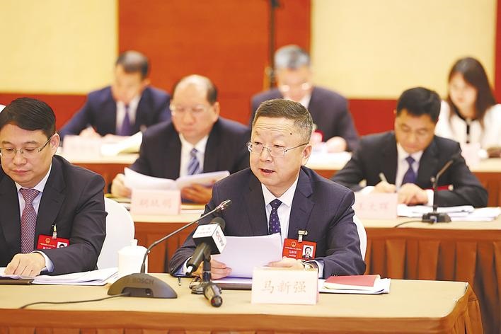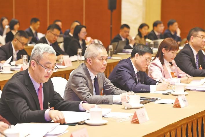 3月5日下午,十四届全国人大三次会议湖北代表团举行全体会议,审议政府工作报告。 (湖北日报全媒记者 李溪 摄)