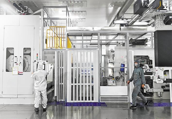 骆驼股份新能源低碳产业园(襄阳)锂电池智能化自动生产线。 (湖北日报全媒记者 田悦 通讯员 谢勇 摄)