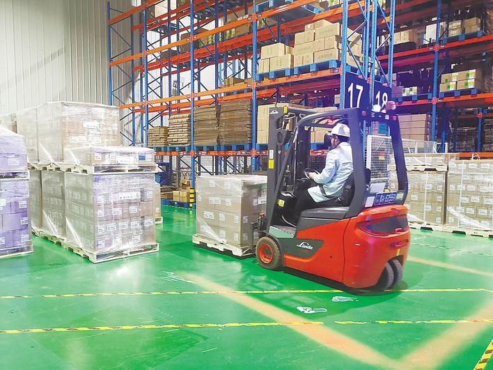 宜昌人福的工作人员正在装载即将发往美国的药品。(湖北日报全媒记者 闫承敏 摄)