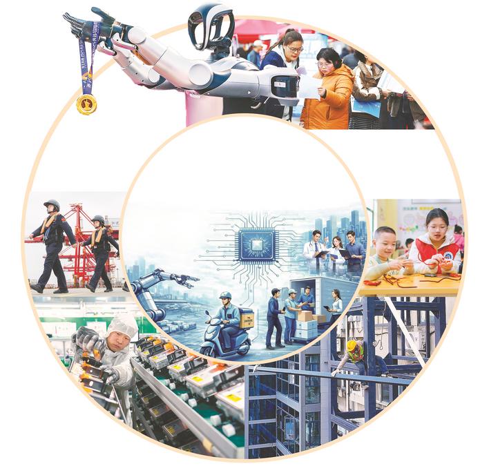 图①:在武汉阳逻港国际集装箱码头,汉口出入境边防检查站民警准备登上“华航汉亚5”轮进行例行检查。 (湖北日报全媒记者 任勇 通讯员 胡艳 摄) 图②:孝感华工高理PTC生产车间,工作人员为即将出厂的加热器做扫码检测。 (湖北日报全媒记者 魏铼 摄) 图③:工人在位于襄阳市樊城区火炬路的市政管理处家属院为旧楼加装电梯。 (视界网 谢勇 摄) 图④:在荆门团市委寒假“爱心托管班”,志愿者在指导小朋友做手工。 (视界网 朱运兵 摄) (制图/徐云 AI辅助制图) 求职者在襄阳市樊城区“春风行动”暨“就业援助季”招聘会现场咨询岗位信息。 (视界网 谢勇 张沛 摄) 在光谷马拉松终点处,人形机器人发放完赛奖牌。 (湖北日报全媒记者 朱熙勇 摄)