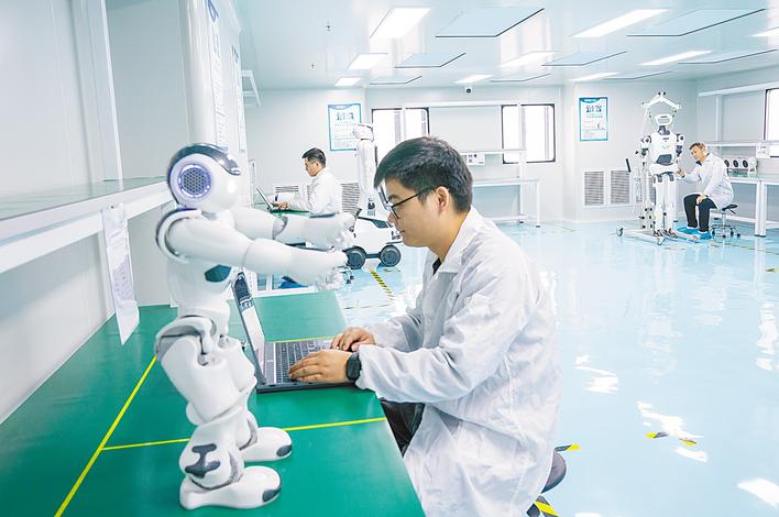 盛视科技股份公司华中总部(武汉研发中心)开足马力赶订单,加快人形机器人及智能产品的组装与调试。(湖北日报全媒记者 魏铼 摄)