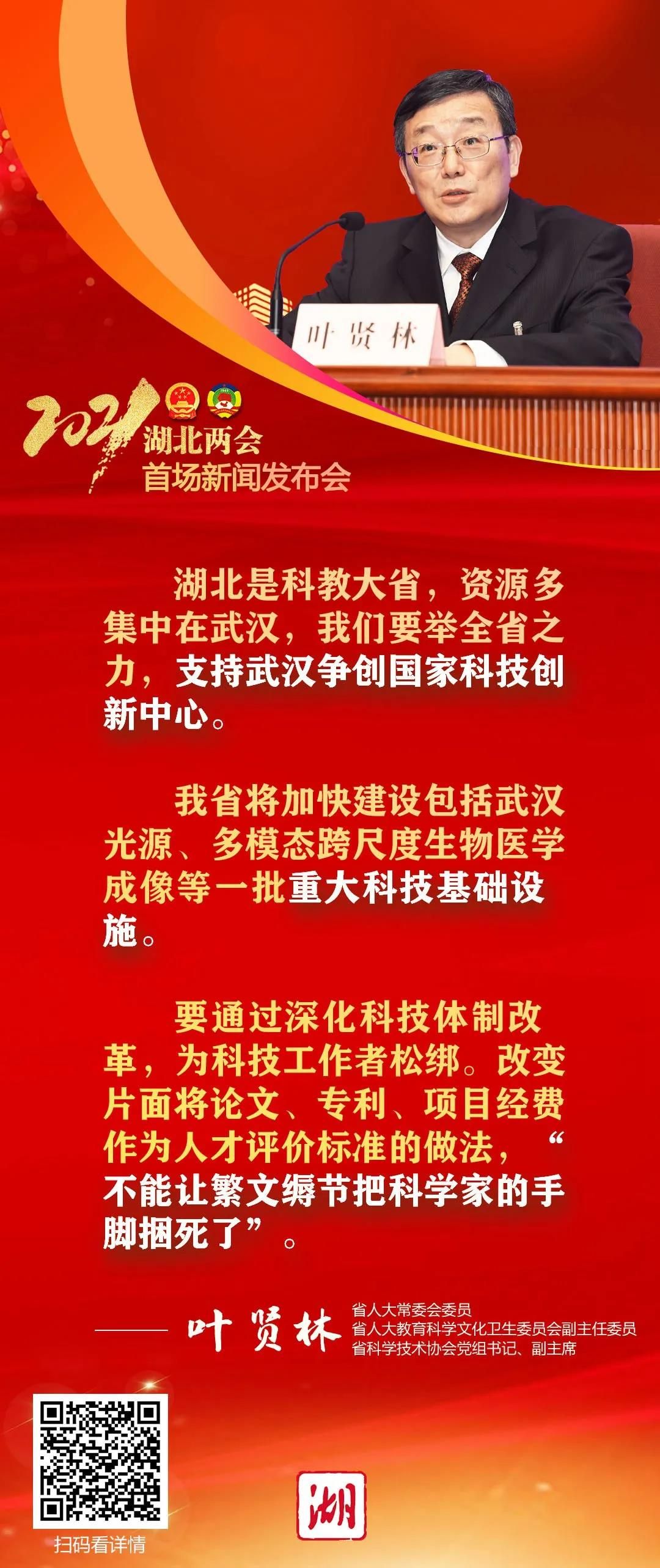 他说,湖北是科教大省,拥有128所高校、2300余家科研机构、73位两院院士、150多万在校大学生,这些资源多集中在武汉,“十四五”期间,省委省政府将规划建设光谷科技创新大走廊,使得武汉成为国内更加重要的高新技术研究基地和创新资源富集地,拥有更加优越的基础和条件。我们要举全省之力,支持武汉争创国家科技创新中心。
