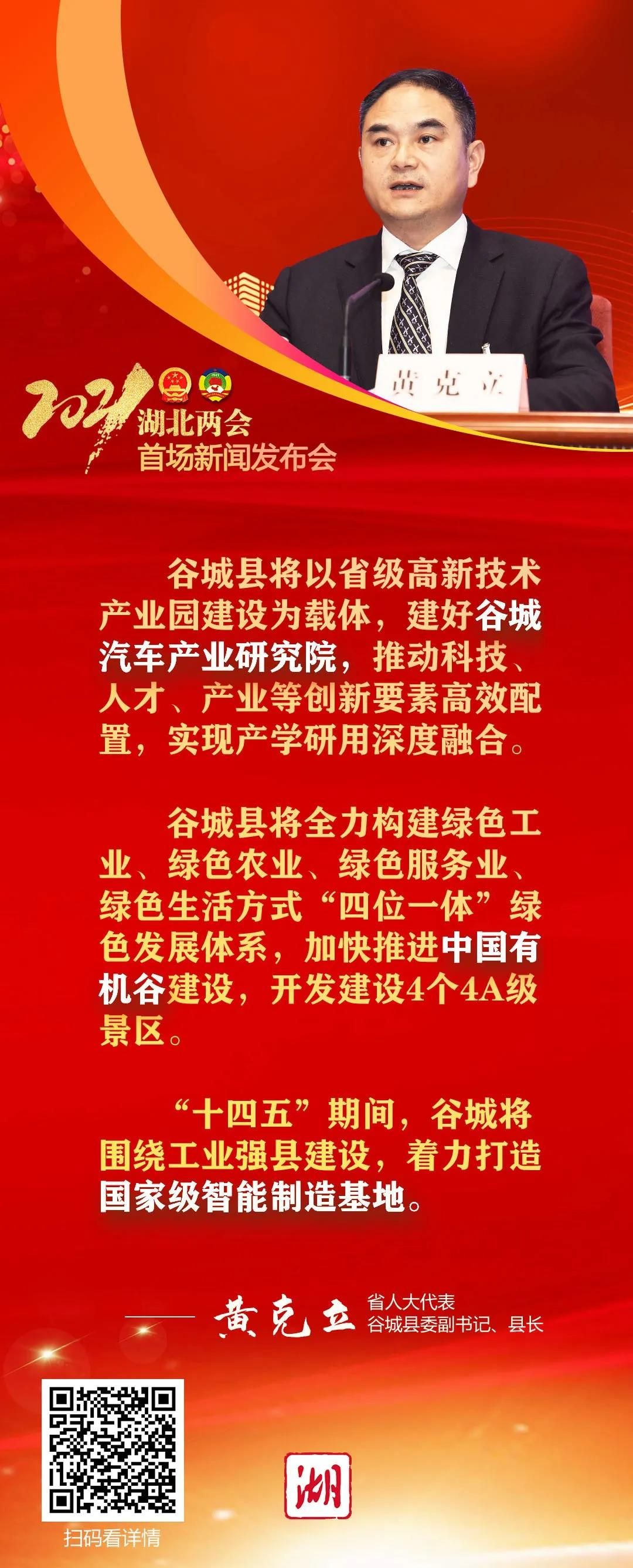 省人大代表,谷城县委副书记、县长黄克立表示,谷城将发力创新升级,在“驱动力”上求突破。