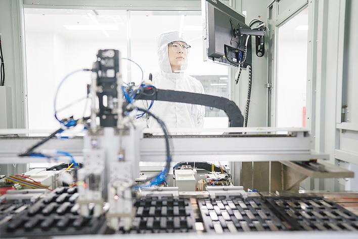 华工科技光电子信息产业研创园洁净厂房,正在生产高速光模块。2027年全面达产后将有超4000万只光模块从这里交付到全球客户,产值超300亿元。
