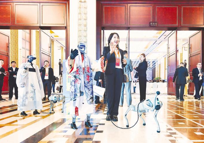 2025年10月29日,第七届楚商大会在武汉举行,参会楚商代表与人形机器人互动。 (本版图片均由湖北日报全媒记者 柯皓 陈迹 薛婷 任勇 通讯员 刘博文 摄)