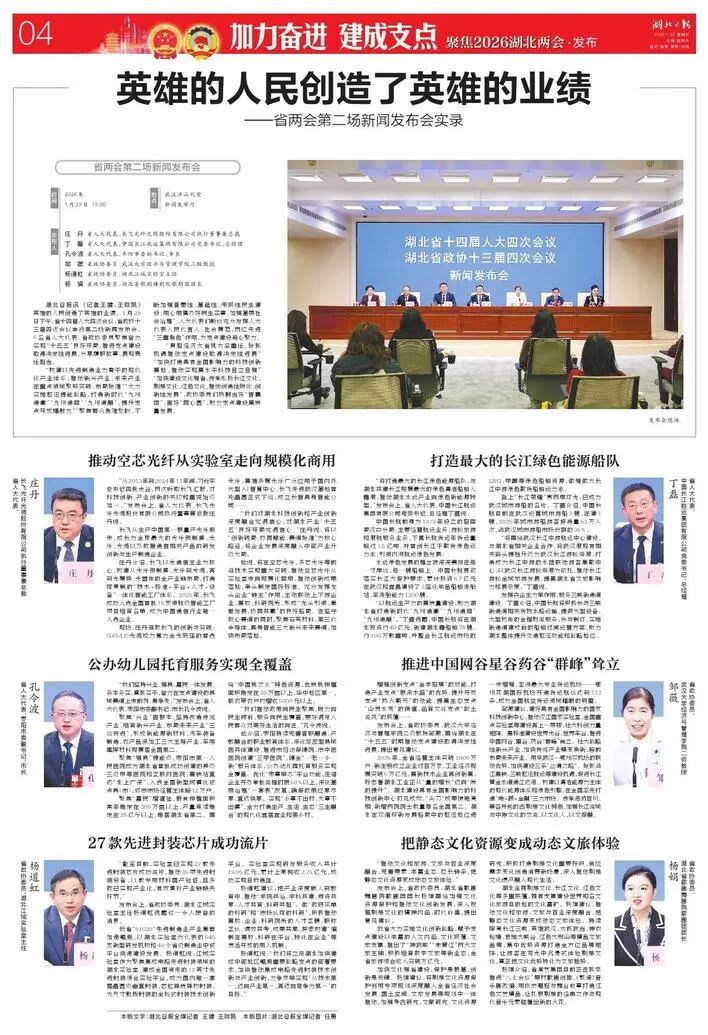 英雄的人民创造了英雄的业绩。1月29日下午,省十四届人大四次会议、省政协十三届四次会议举行第二场新闻发布会。6名省人大代表、省政协委员聚焦奋力实现“十五五”良好开局,推进支点建设取得决定性进展,分享履职故事,展现责任担当。