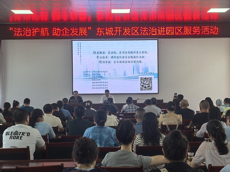 “生产线因合同纠纷停摆、核心技术遭遇侵权、劳动争议调解难……这些法律难题常让企业头疼。”近日,在驰田汽车股份有限公司的生产车间里,省级人大代表蔡青向前来走访的东城开发区人大工委工作人员反映园区企业普遍面临的法治困境。民有所呼,我有所应。为破解企业发展中的法治难题,东城开发区联合茅箭区法院、区司法局、湖北郧和律师事务所等单位,共同开展了法治进园区服务活动,将法律服务送到企业“家门口”。