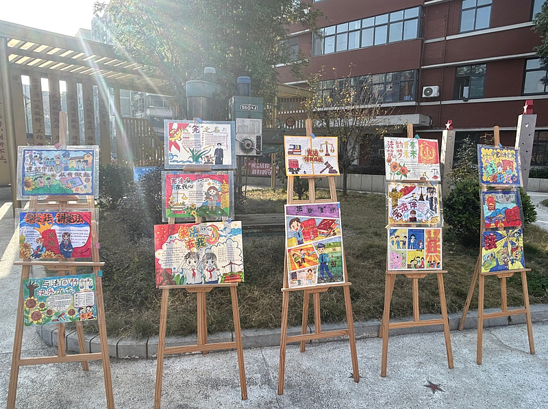 室外街心广场,普法宣传展区人头攒动。茅箭区“八五”普法成果展板整齐陈列,从习近平法治思想核心内容到《法治宣传教育法》解读,从法治文化阵地建设到“法律明白人”作用发挥,再到“一月一主题”普法活动集锦,全面展现了辖区法治建设成效。法治剪纸、手抄报等特色作品引得群众驻足欣赏,传统艺术与法治元素的融合,让大家在潜移默化中感受法治文化魅力。
