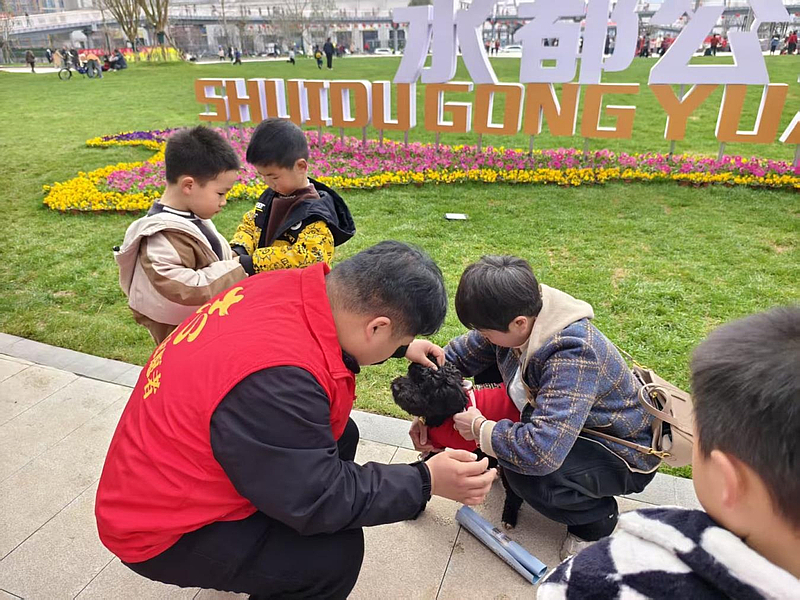 聚焦民生关切,搭建宣传阵地。随着生活水平的提高,宠物犬逐渐成为许多家庭的重要成员,但不遛狗不牵绳、犬只随地便溺、犬吠扰民等问题也随之而来,成为社区治理的难点和群众反映的热点。均州路街办人大工委敏锐捕捉到这一民生诉求,将文明养犬宣传作为提升基层治理水平的重要切口。活动选址水都公园,正是看中其作为居民遛犬集中、人流密集的公共区域,宣传覆盖广、辐射效应强。现场悬挂主题横幅、设置宣传手牌、发放《文明养犬倡议书》,一系列举措营造出浓厚氛围,引得过往群众纷纷驻足,主动询问、认真倾听。