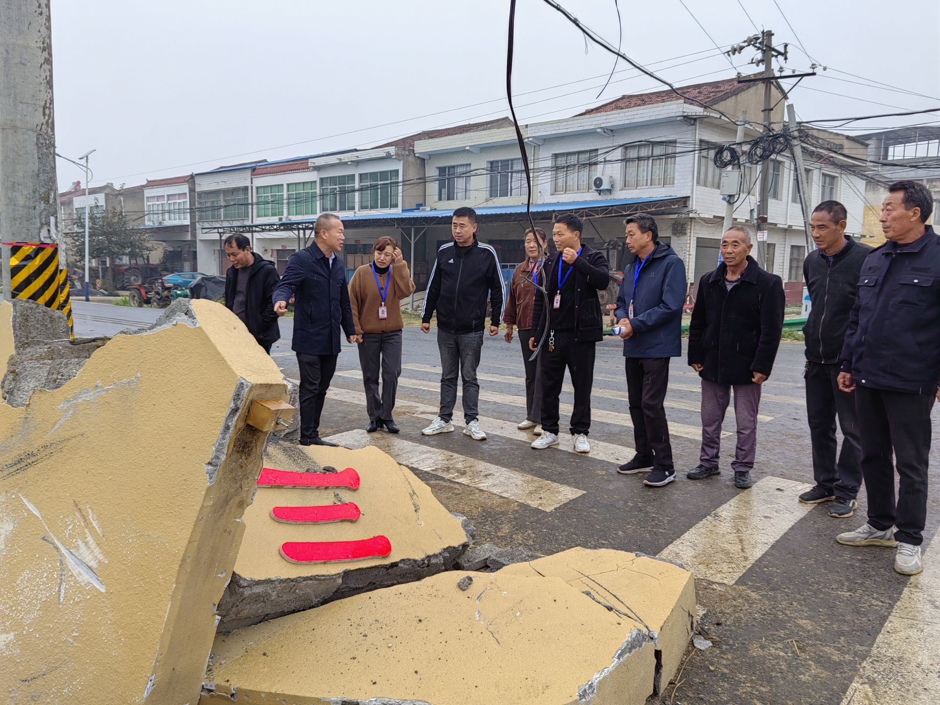 11月9日下午,在襄州区程河镇埠苍路三房村村委会路口处,6名区镇人大代表与部分干部群众代表正就道路交通安全问题进行实地调研,协调解决安全隐患。