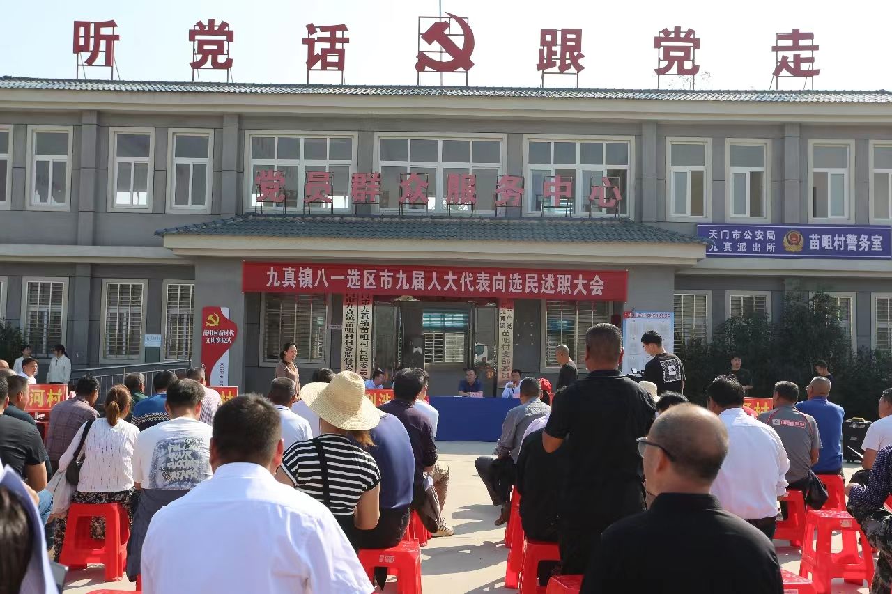 代表履职怎么样,述职会上当面讲;代表干得好不好,选民评议说了算。11月2日上午,在天门市九真镇苗咀村党员群众服务中心门前,几十条板凳一摆,几个桌子一放,一场别开生面的述职大会就此展开。