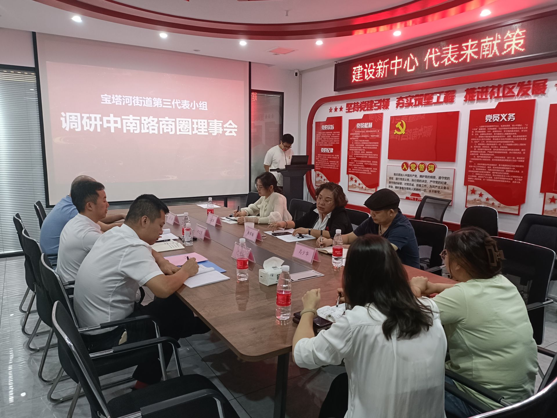 在宝塔河街道东星社区代表联络站,人大代表们详细听取《探索“党建联盟”打造城市商圈“会客厅”》项目介绍,与街道、社区干部一起围绕“创建中南路城市客厅示范区、推动中南路商圈理事会建设”等工作碰撞思想火花,凝聚发展共识。