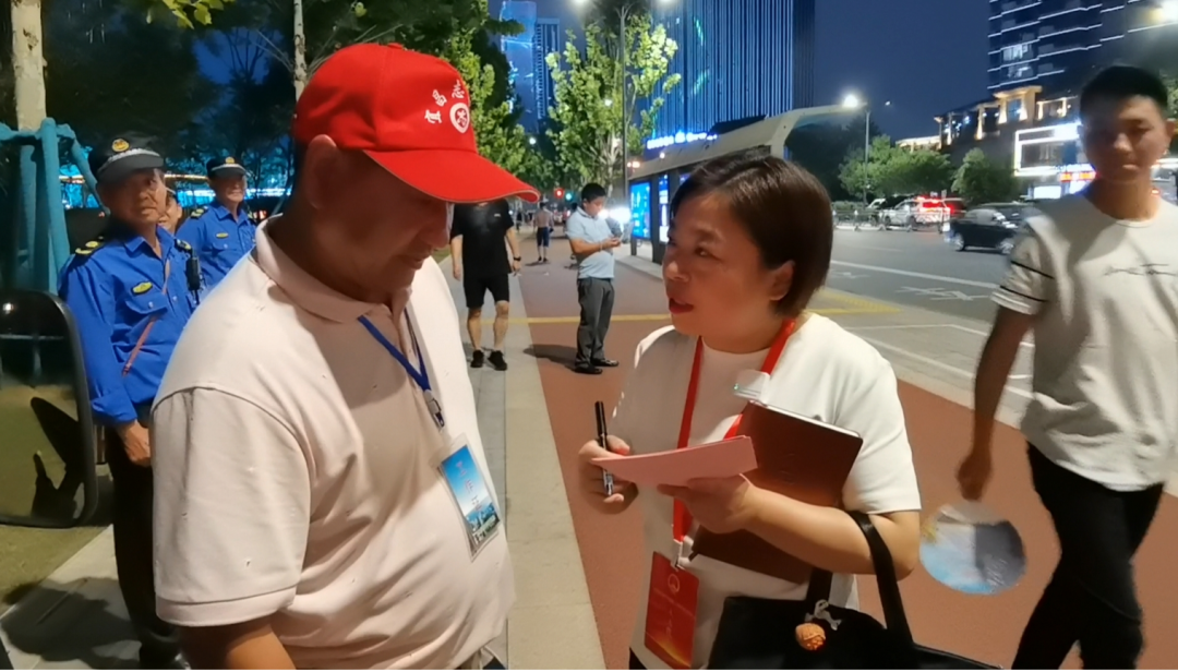 此次活动“车上”“车下”同步听民声,车行至江豚广场站,一部分人大代表、九三社员下车在广场上收集纳凉群众的意见和建议。
