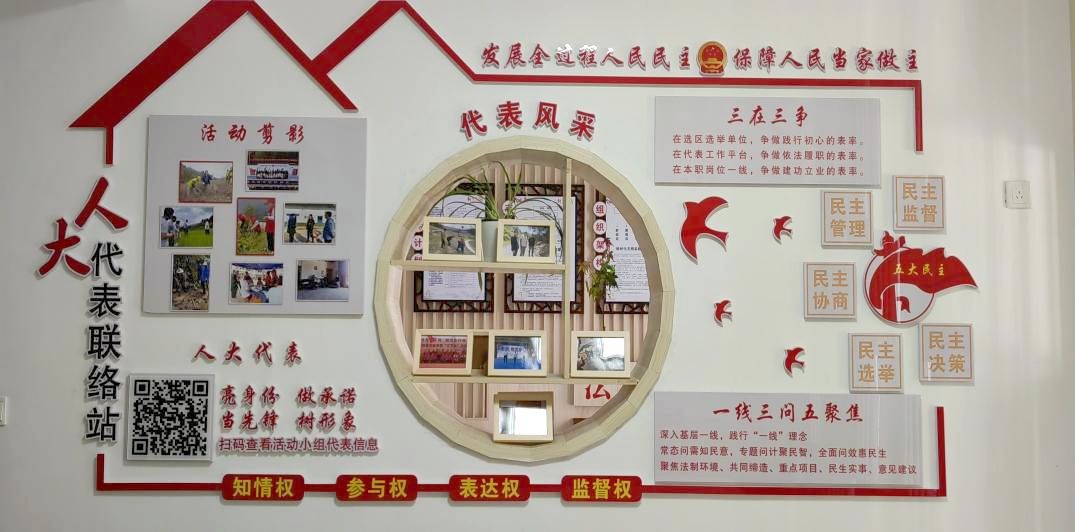 完善阵地建设。立足“五有五化”建设标准,立足实际、聚焦特色,推动全过程人民民主实践基地建设。率先在高岚、马粮坪开展实践站改造提升,制作代表信息二维码,只需一扫便可以查询到县镇人大代表姓名、单位职务、联系方式等,让群众“找代表”更为便捷。