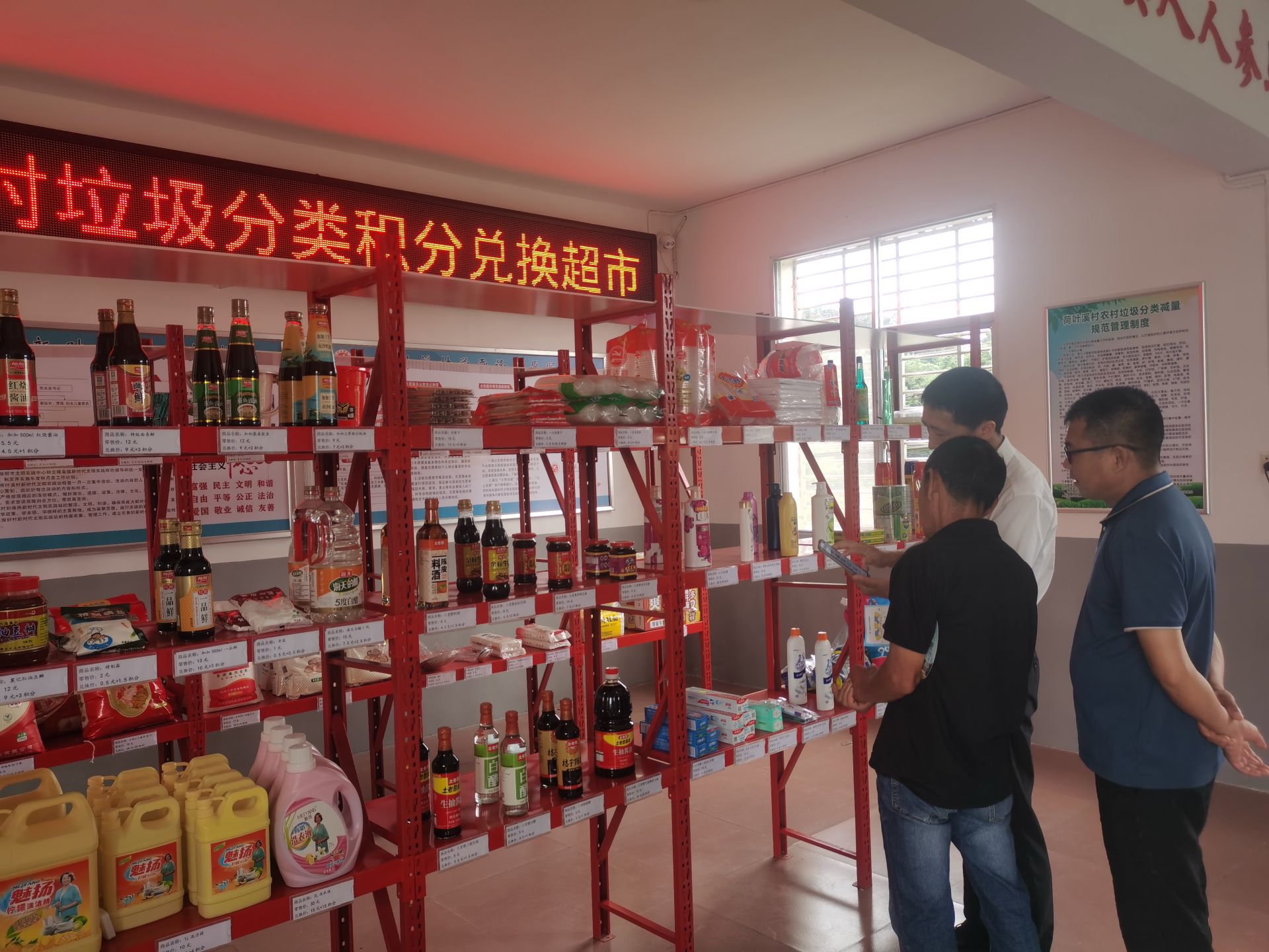 在荷叶溪村“环保银行”的墙上醒目位置,《农村垃圾分类减量规范管理制度》《垃圾分类积分兑换细则》等制度明确清晰——包装纸壳每斤积1分、纽扣电池2个积1分……村民在这里可以用旧衣服、废电池、矿泉水瓶等废旧物品来兑换积分,“环保银行”以略高于市场价60%的标准收购,转换成积分形式后,积攒到一定的积分就能道兑换超市兑换到洗洁精、肥皂、调味品等20多种老百姓家中日常需要的生活用品。