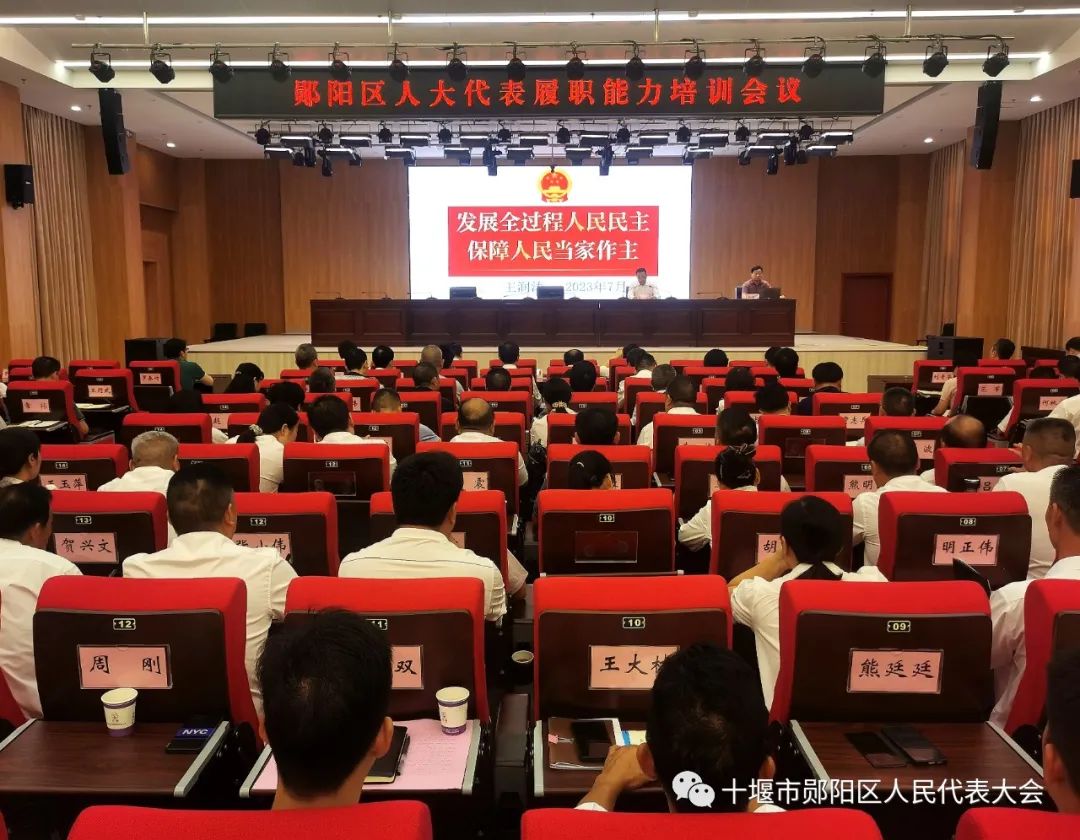 为进一步提升人大代表的履职能力与水平,充分发挥代表作用,7月18日,十堰市郧阳区人大常委会组织召开全区人大代表履职能力培训会。本次培训以视频会议形式,在区委新党校四楼会议室设主会场,18个乡镇设分会场,对全区1500余名四级人大代表进行了专题培训。区委副书记、区长梅华等区委理论学习中心组成员在主会场收看了培训讲座,区人大常委会党组书记、主任王成主持会议并作讲话。