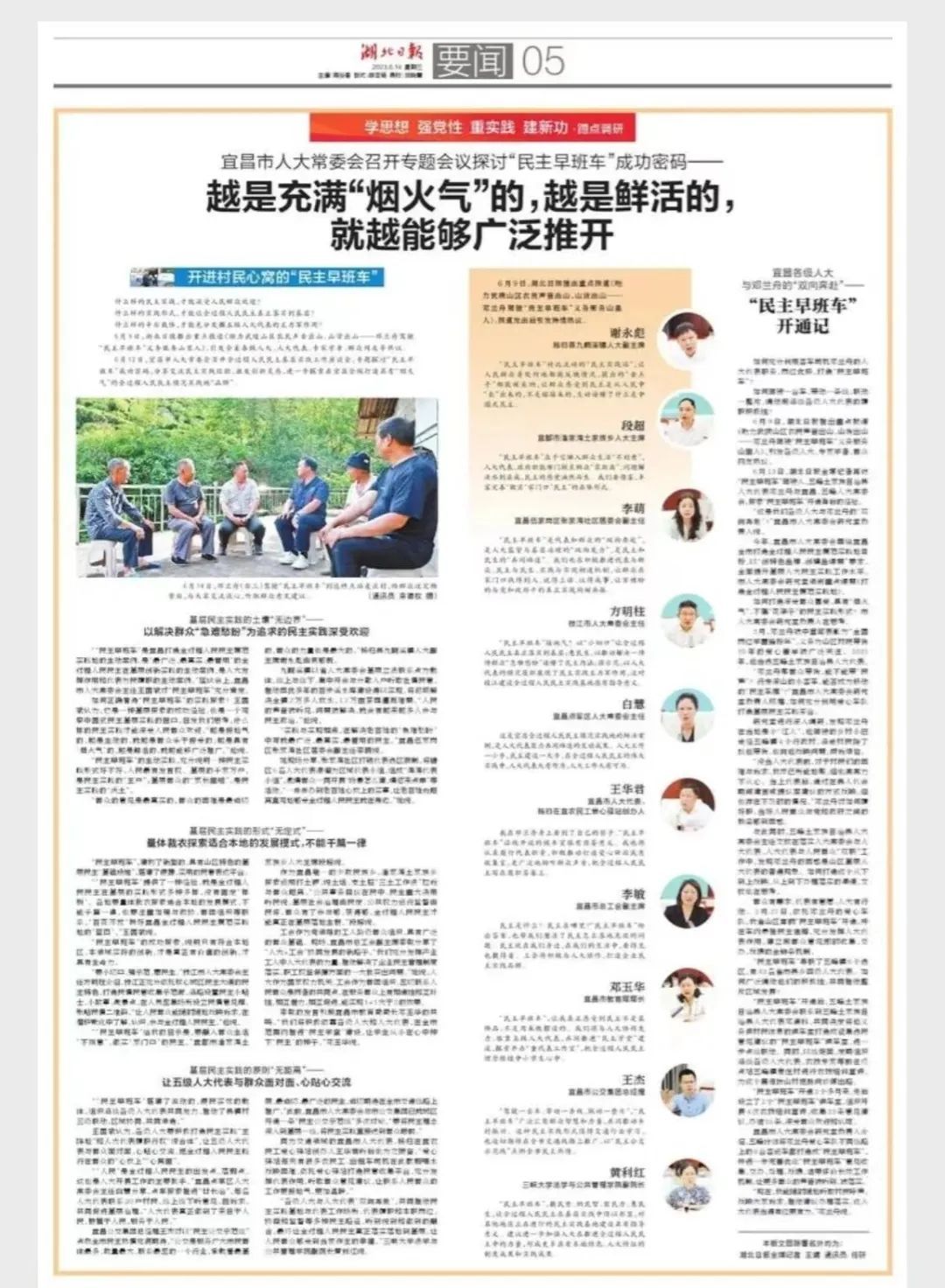 “‘民主早班车’给我的启示是,要融入群众生活‘不刻意’,做实‘家门口’的民主。”宜都市潘家湾土家族乡人大主席段超说。