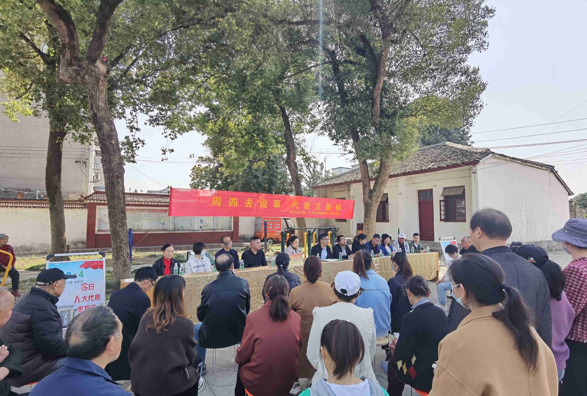 春暖花开,万物复苏。三月里的枝城老街,是绿色的。走进绿色拥裹中的宜都市枝城镇老政府小区,首先映入眼帘的是一条悬挂的横幅——“周四去说事,代表立新标”。原来,今天是宜都2023年第3个“1·2·4”(每个月第二周星期四)代表接待日,三四十名群众与17名人大代表围坐在一起,就老旧小区改造的相关问题进行协商讨论。