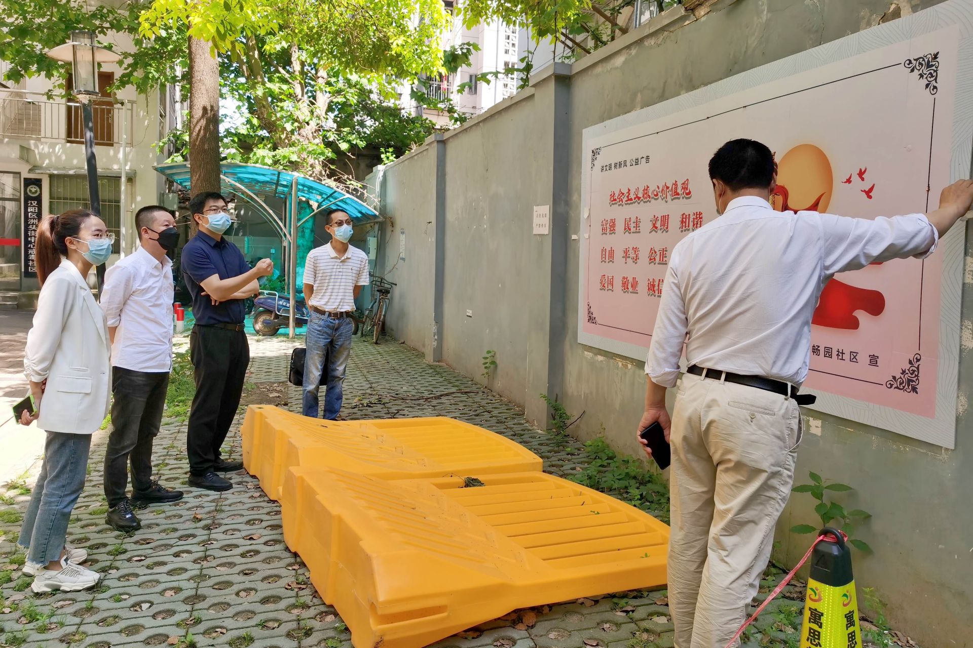于是,就发生了开头的一幕:他们邀请居民到家门口的代表联络站,共同商讨修缮墙体的实施方案。