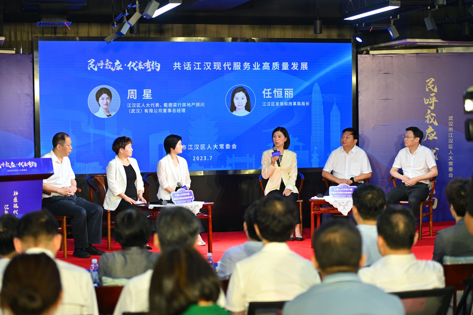 江汉区作为国家服务业综合改革示范典型,服务业增加值占地区生产总值的比重达95%以上。加快现代服务业发展,人大责无旁贷。2023年7月11日,江汉人大“约您共话——汇聚人大代表力量,助推现代服务业高质量发展”主题活动在汉口文体中心举行。
