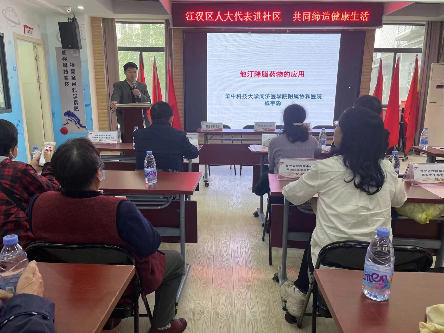 三民社区是位于江汉区南部的一座老旧社区,居民年龄结构偏大,对健康知识宣传普及的呼声高。此次讲座,协和医院神经内科黎钢教授和心内科魏宇淼教授分别讲授了《心脑血管病的预防》和《降脂药物的应用》等相关知识,这是人大代表们在前期调研的基础上,针对群众需求的精准回应。