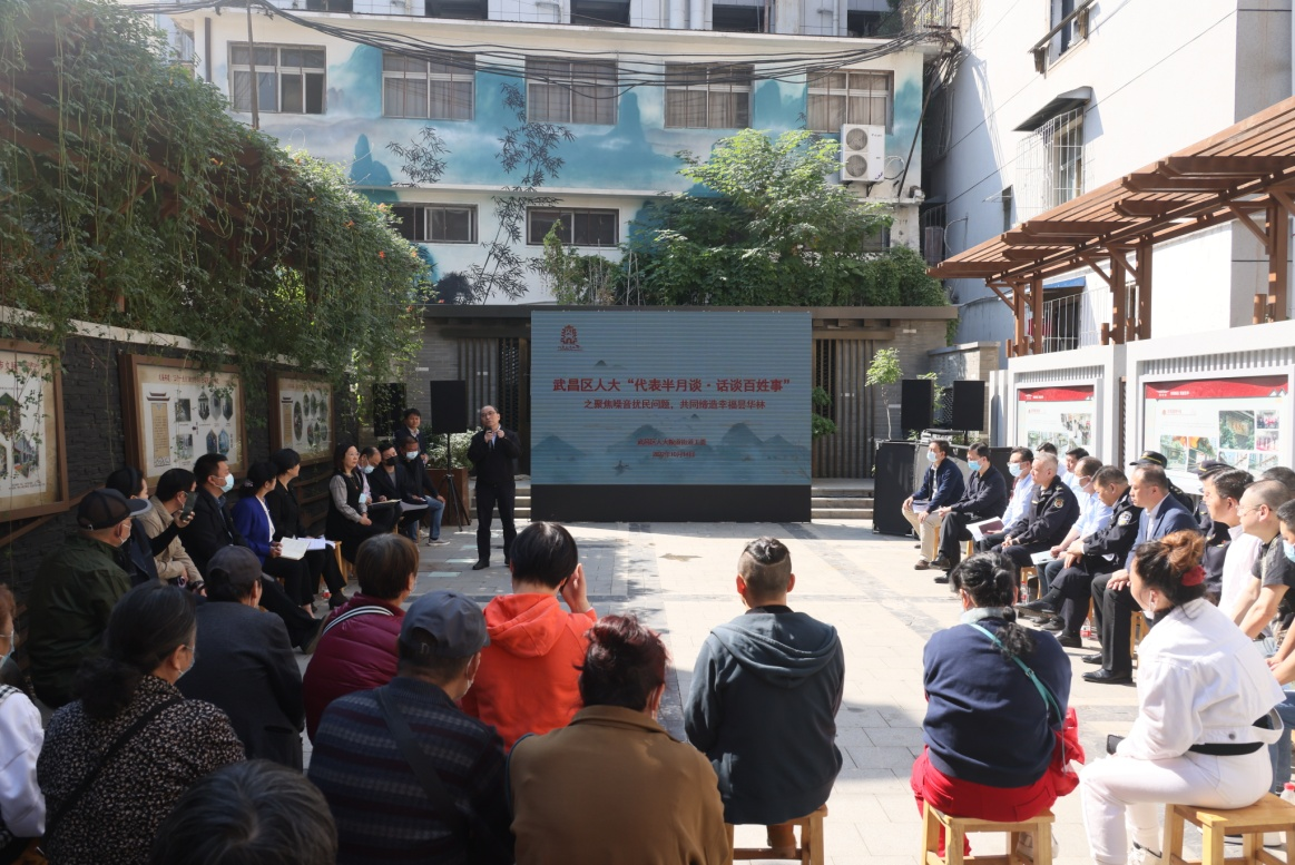 金秋时节,武汉市武昌区粮道街道昙华林社区昙华小院,数十张板凳环绕成圈,人大代表、居民群众、商户代表以及相关部门负责人面对面举行“代表半月谈”活动,聚焦居民反映强烈的“噪音扰民”问题进行专题座谈。