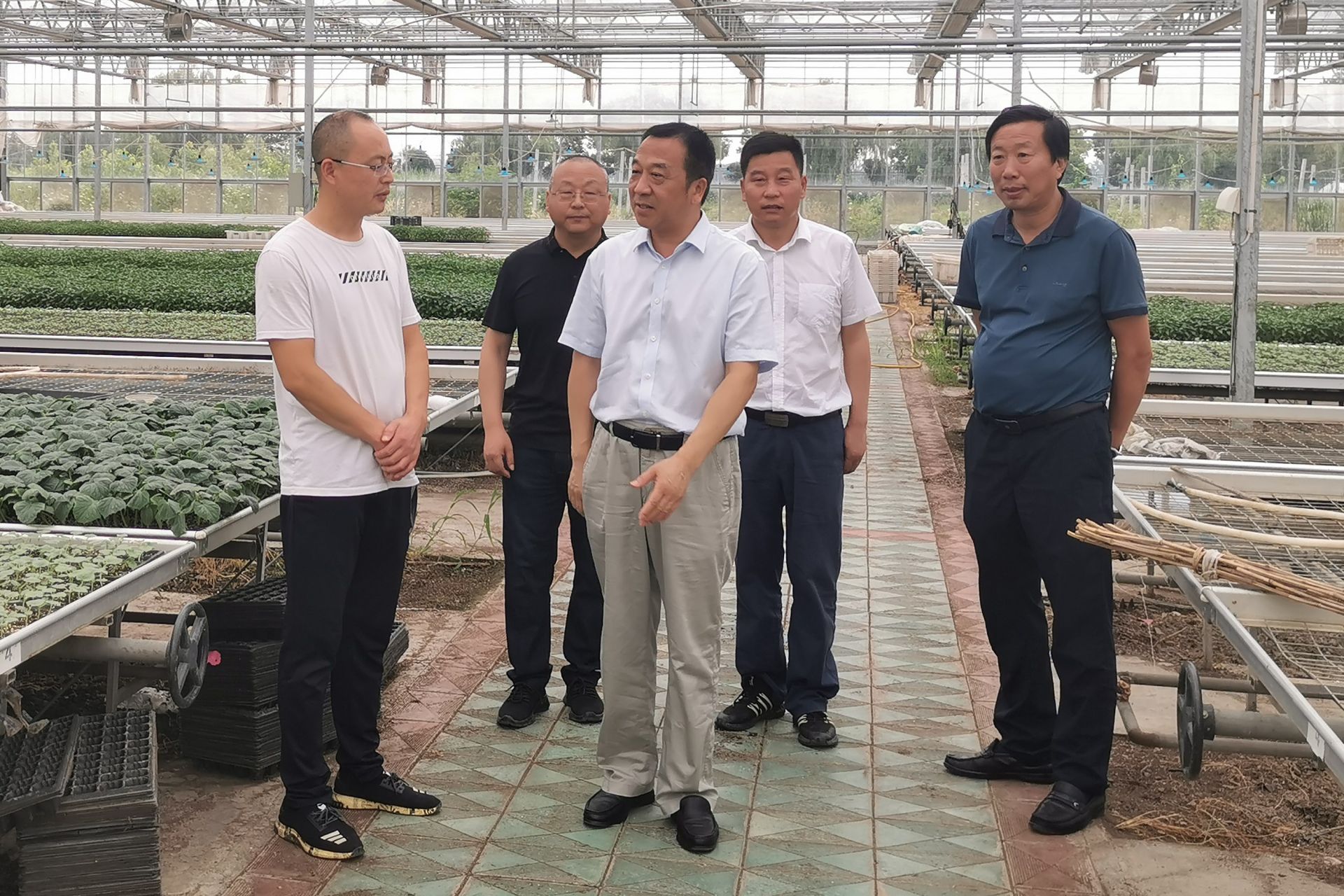 掇刀区团林铺镇双碑村代表联络站建在果蔬种植产业链上。图为人大代表在春篮蔬菜种植合作社蔬菜大棚开展调研