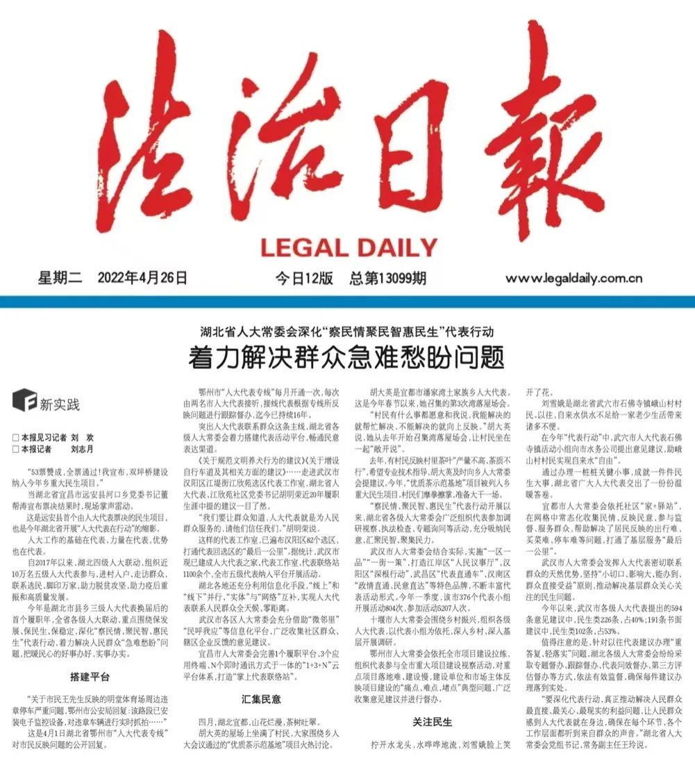 法治日报|湖北省人大常委会深化“察民情聚民智惠民生”代表行动 着力解决群众急难愁盼问题