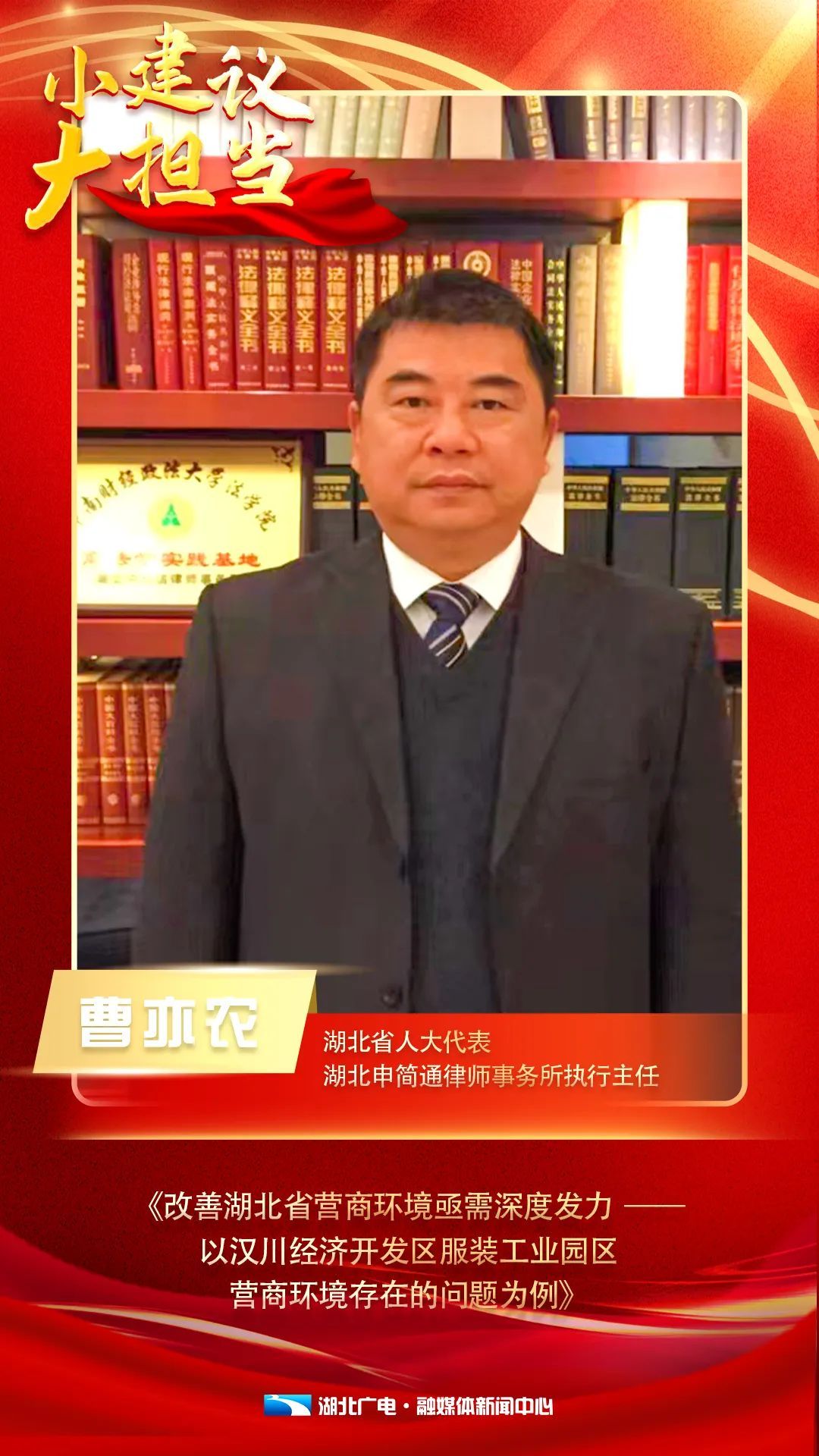 曹亦农通过走访调研,在湖北省十三届人民代表大会第三次会议上提出建议,大力整改营商环境。