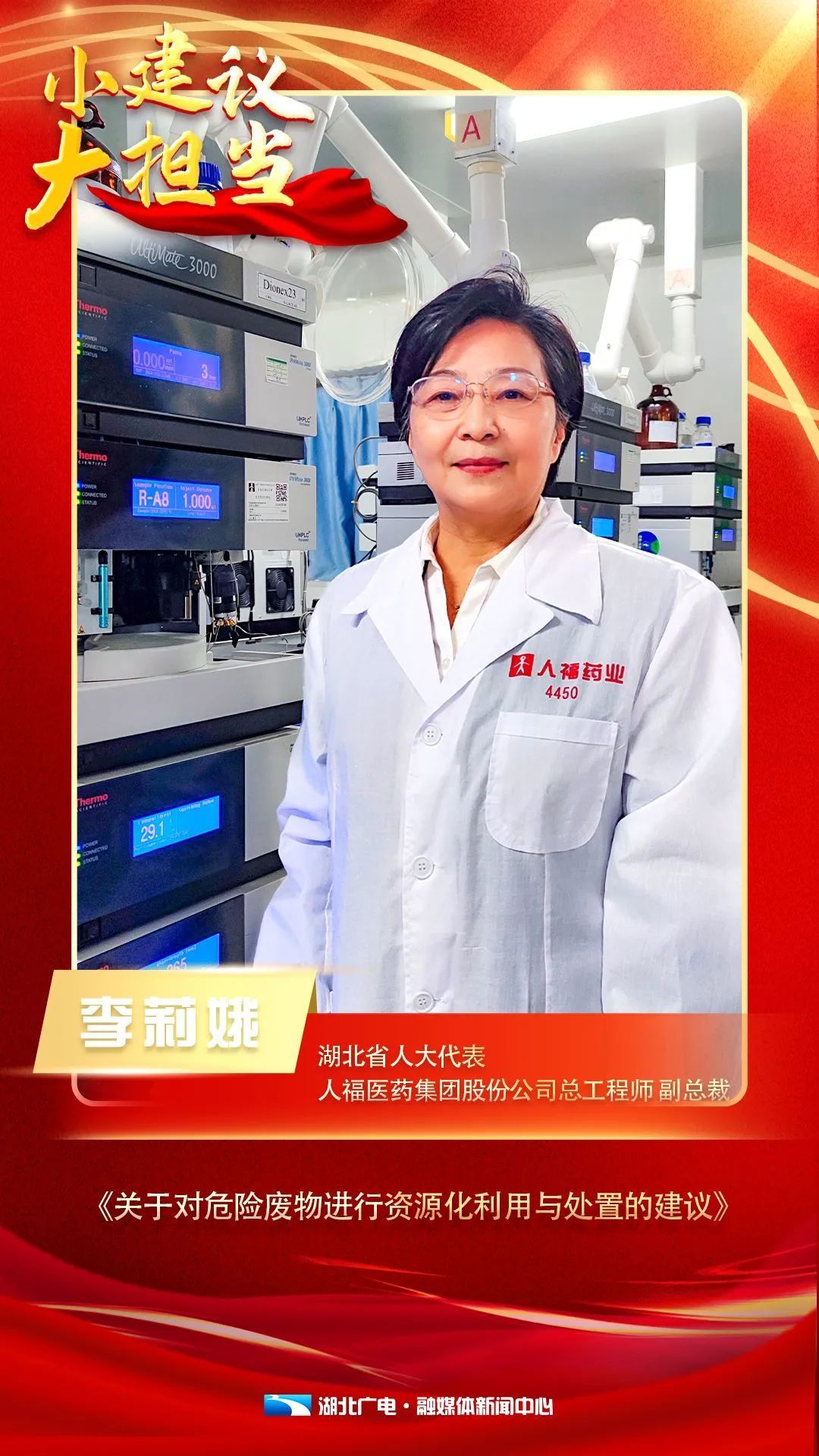 湖北省人大代表、人福医药集团股份公司副总裁、总工程师 李莉娥:“我们是制药企业,无法进行危废的经营处置,如果在国家的相关部门的主导下建设这样的平台,就可以畅通供需方信息。”