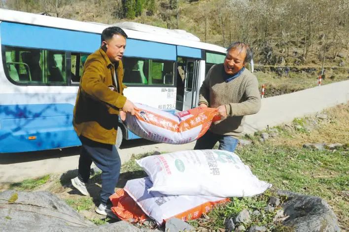 邓兰舟(左)为村民代购化肥。(通讯员 简高林 摄)