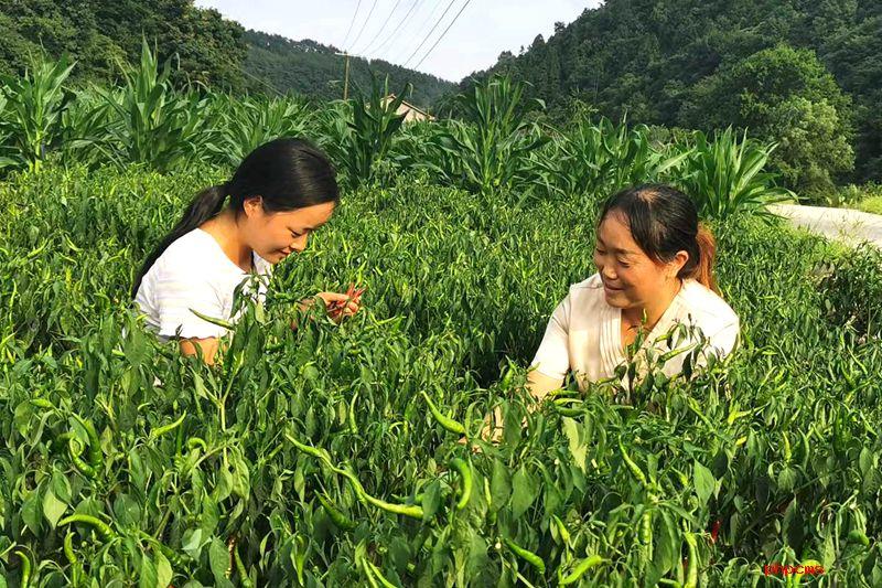 杨风梅(右)为村民讲授小米椒种植技术