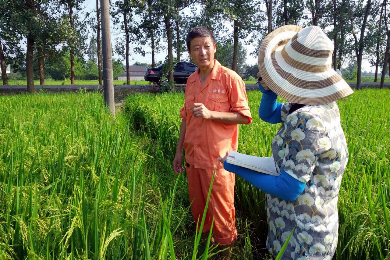 向祖红查看合作社社员的田块长势情况