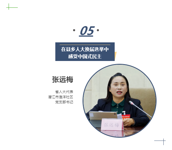 人民民主是一种全过程的民主。全过程人民民主,是人民当家作主的生动实践和必由之路。今年县乡人大换届选举,我有幸作为基层的宣传者、引导者、组织者参与。为做好这次换届选举工作,社区组织宣传车、办起黑板报让选民知晓换届工作的重要意义。从代表的初步人选,到组织考察,到正式代表候选人的产生,最后经过选举投票选出正式代表,整个过程公开、公正、透明。使用“湖北省选民登记信息系统”登记选民43188人,无错登、无漏登、无重登。我所在的选区选民知晓率100%,选民积极参与,充分表达自己的意愿,并投出自己神圣的一票。这样的民主,突出了人民主人翁的地位,彰显了具有中国特色的民主政治制度的先进性、完整性和科学性。