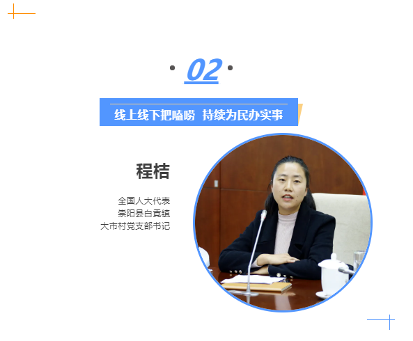 发展全过程人民民主,人民代表大会制度是主渠道,人大代表是主力军。有一年夏天在竹山县天英留守儿童托管中心的调研让我印象深刻。该机构里的50多个孩子,行为无精打采,学习成绩普遍较差,深入调研后得知原因一是收费低导致学生饮食标准低,一周只有两顿肉;二是孩子长时间无法与家长沟通联系,缺少亲情关怀。我向县政府反映后,县政府及时统一解决了全县留守儿童托管中心的营养餐问题,并为每个托管中心配备5到10台电脑,让孩子们可及时与父母进行亲情连线。一次调研视察,一件代表建议,一次审议发言,即可形成上下直通、同频共振,有效回应群众关切,把党的主张、国家意志、代表工作和人民意愿融为一体,将民主的营养不断输送到社会的每个细胞,正是代表发挥全过程人民民主主力军作用的真实写照。