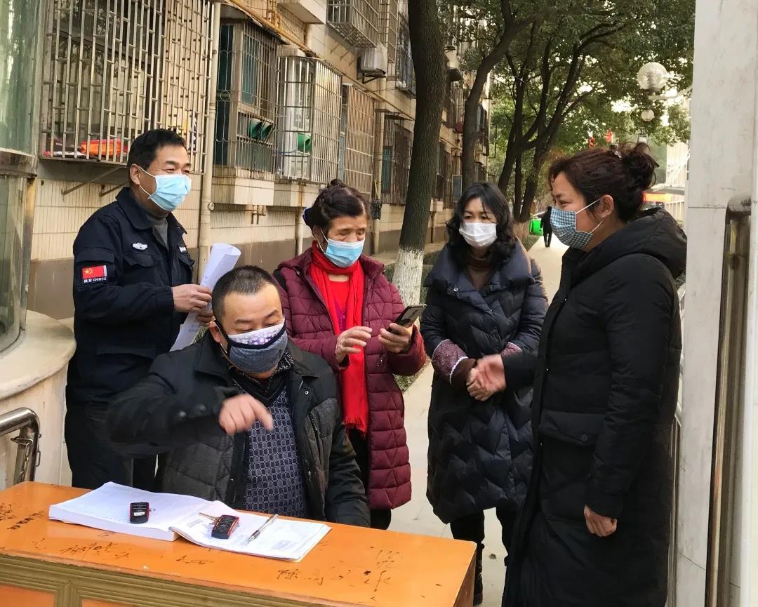 ▲大冶市人大代表、湖滨社区书记、主任梅淑华(右一)检查社区卡点疫情值守情况