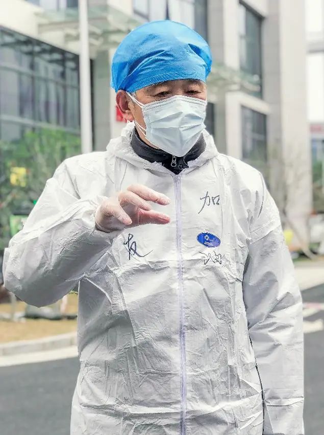 2月14日,杨建桥带着他的“战友志愿者服务队”来到优抚医院,为帮助医院开展救治工作提供志愿服务。20多天的时间里,除了睡觉,杨建桥身上都穿着白色的防护服,胸前写着四个大字:战友,加油。