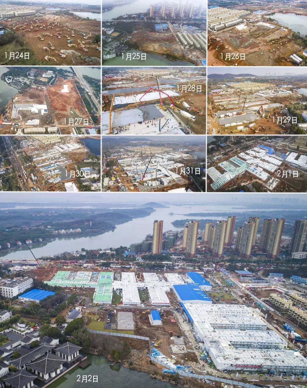 高峰期,中建三局动员管理人员800余人,作业工人4000余人,调配大型机械设备、车辆近千台。现场作业实行两班轮班制,24小时不间断施工。截止2月1日,活动板房全部安装完成,机电安装完成70%,道路,医疗配套设施施工全面推进。