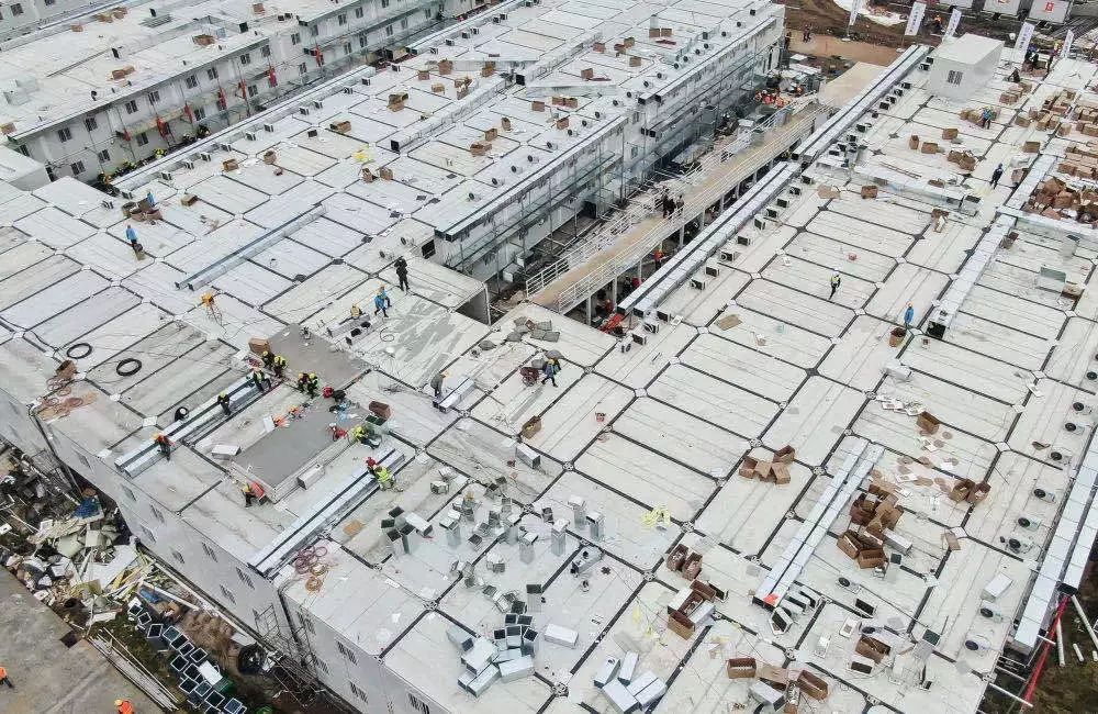 1月30日,集装箱板房进场、改装、吊装快速推进。
