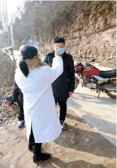 韩丙翠主动站在疫情防控第一线,与村干部一起登记、排查返乡人员和车辆,上路参与劝返点过往人员体温检查和登记,对来村就医人员进行防疫知识宣传,对发烧发热人员进行仔细询问,并做好初步排查等工作。