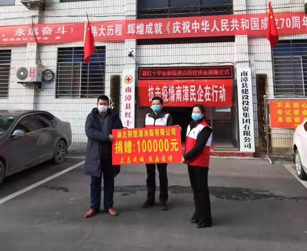 为抗击疫情,张传明向南漳县红十字会捐款10万元。
