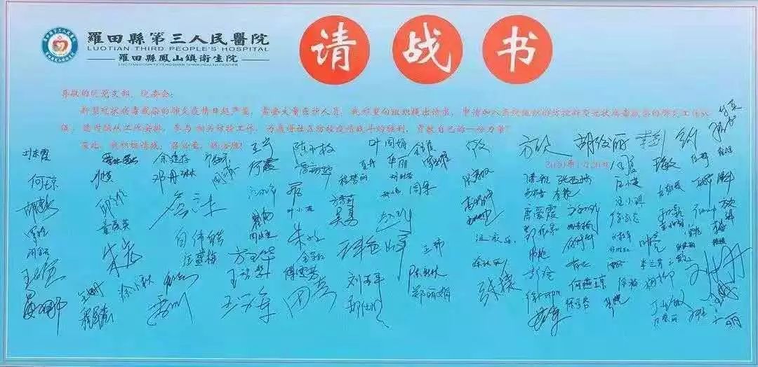 “我请求参加疫病防控,服从调遣,勇于担当,不畏艰难,尽医者之责,不辱使命,履医者荣光,护佑健康,决战决胜!”1月27日詹启木带领全院医生、护士在《请战书》上签名。
