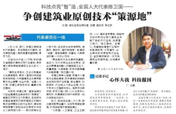 此次,新当选全国人大代表,陈卫国深感责任重大,他将聚焦智能建造、科技创新等方面提出建议。
