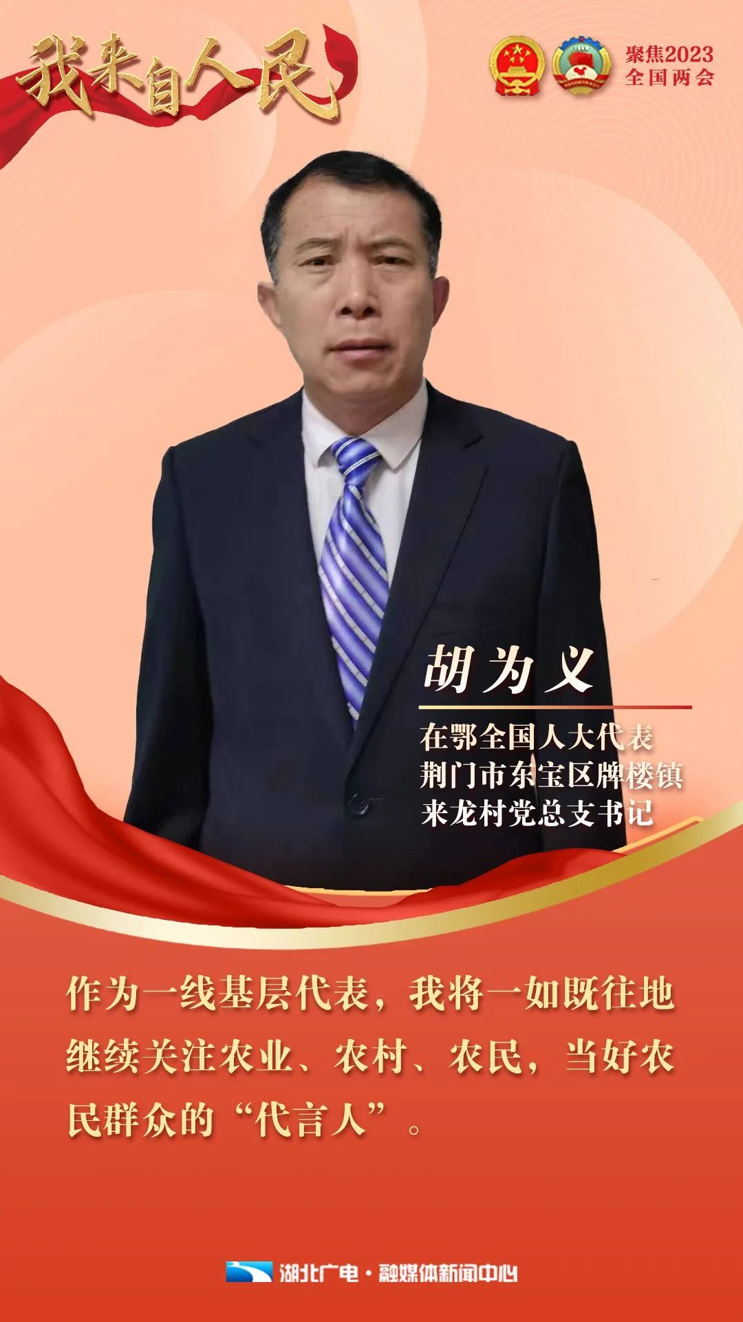 带着“荆”春的希望与期盼,湖北省选出的第十四届在鄂全国人大代表即将共赴2023年全国两会的“春之约”。从2月13日起,湖北广电融媒体新闻中心推出专栏《我来自人民》,对话人大代表,听听他们“想人民所想、急群众所急”的履职心声。本期特约在鄂全国人大代表胡为义。